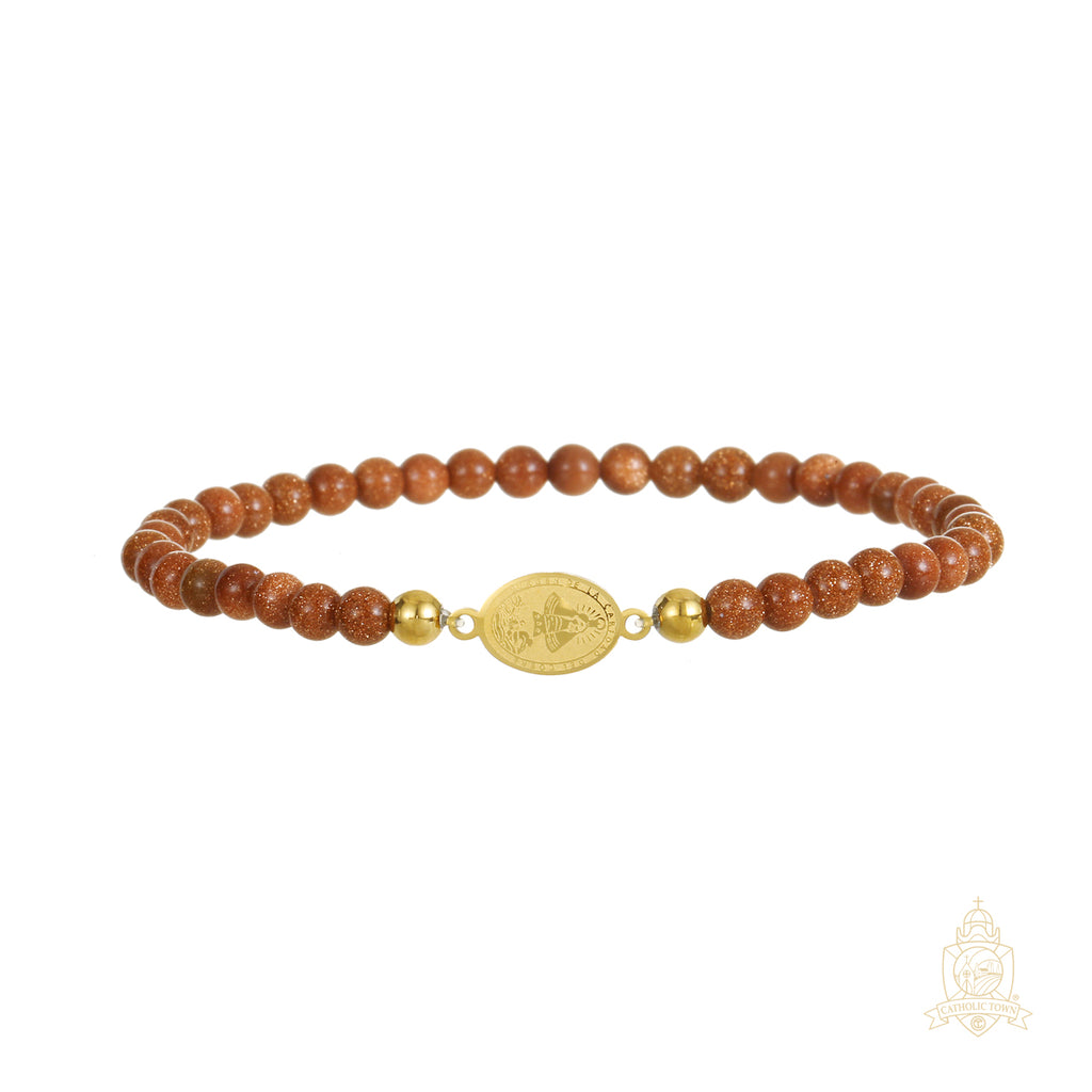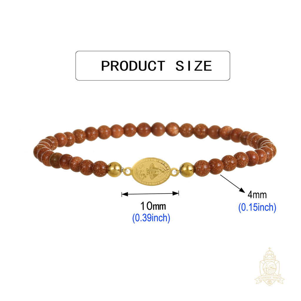 Catholic Town Bracelet with Stainless Steel Virgen de la Caridad del Cobre medal and 4mm Venturina beads (SSBCMVS-4)