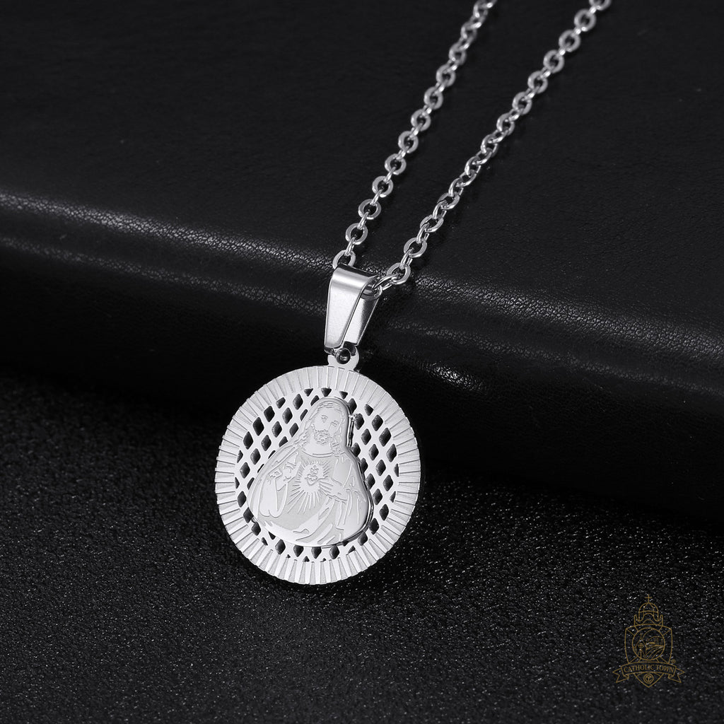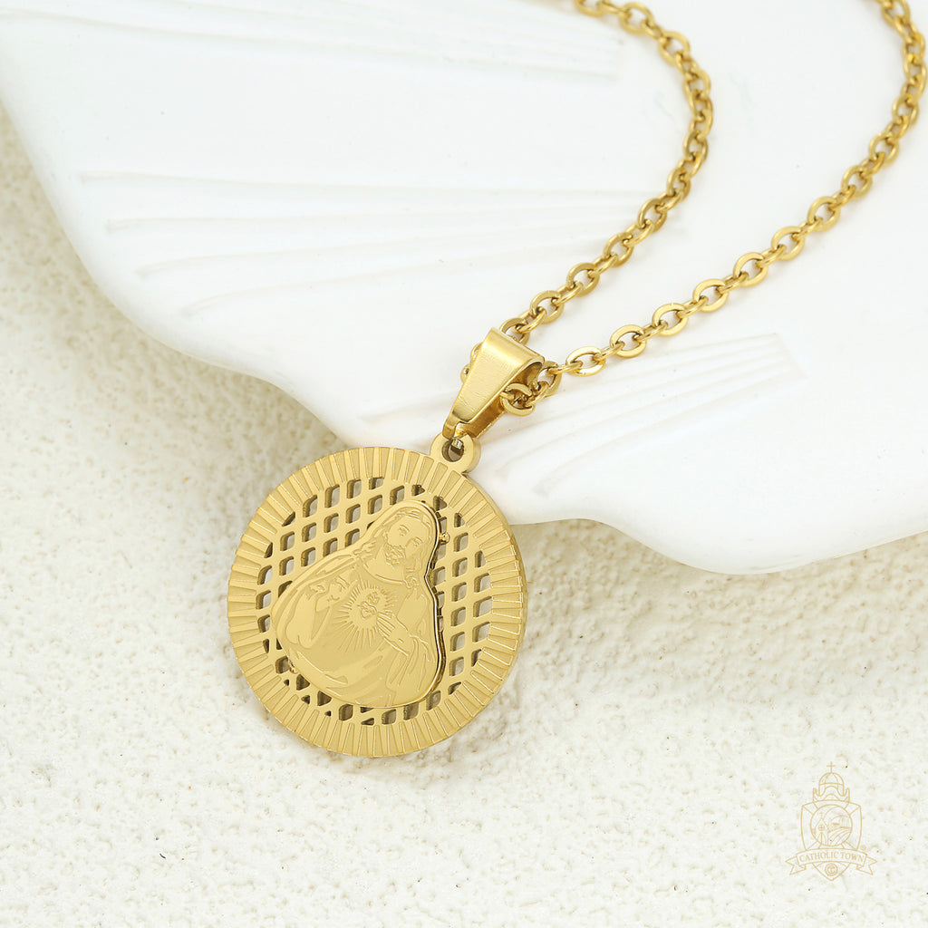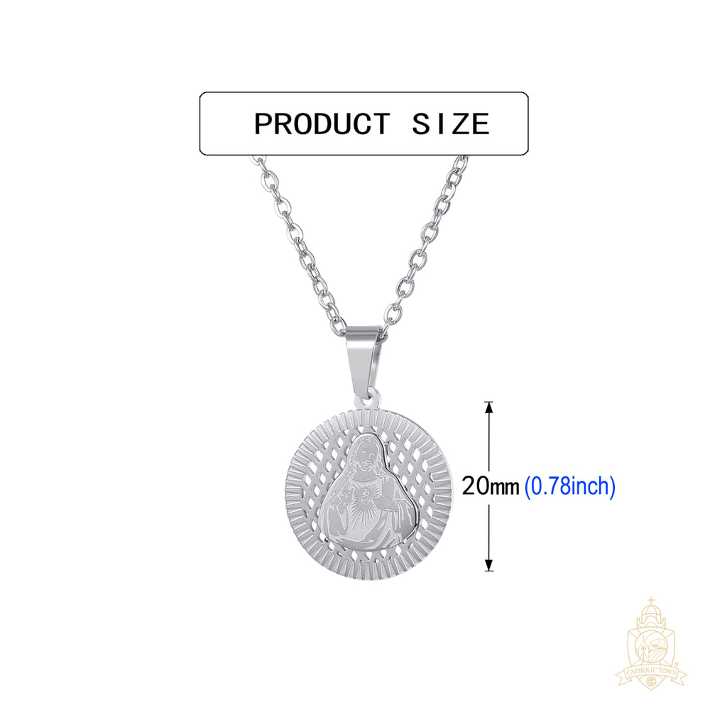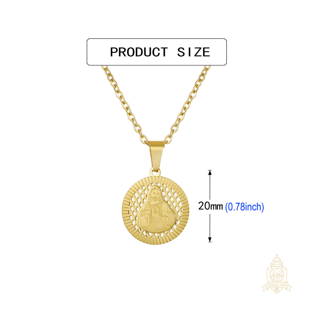Catholic Town Sacred Heart of Jesus Round Medal Necklace – Stainless Steel (Gold/Silver)
