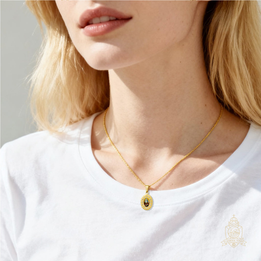 Enhance your Catholic faith with the Catholic Town Our Lady of Charity "Virgen de la Caridad del Cobre" Stainless Steel medal with chain. Crafted from durable stainless steel, this medal features the beloved patroness of Cuba and comes with a chain for easy wear. Perfect for everyday use or as a special gift for a loved one.