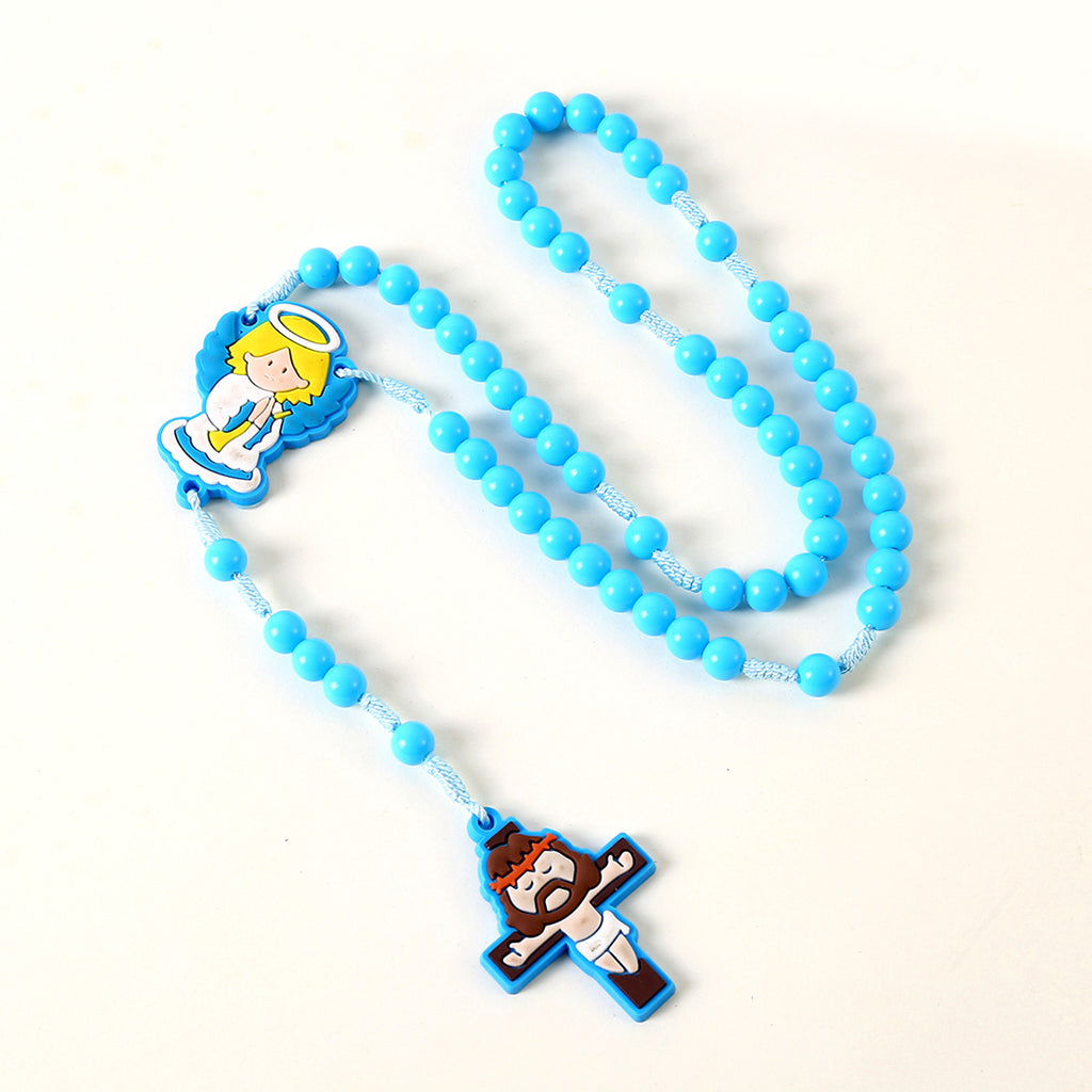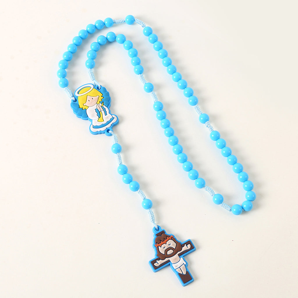 The rosary includes a colorful angel centerpiece and a soft-style Jesus crucifix, both created with a warm, approachable design that connects faith with childhood innocence while honoring Catholic tradition. Its lightweight construction makes it comfortable for daily use, family prayer, or classroom activities.